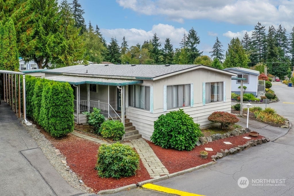 Welcome to this lovely updated home in a well-kept 55+ community! Updated throughout, this home offers two spacious bedrooms, and two baths, open kitchen with eating bar, newer flooring, new furnace, updated paint throughout, newer refrigerator, and newer roof. Located on one of the larger corner lots in the community, plenty of opportunity for enjoying the outdoors. Community offers clubhouses, storage and RV parking. Conveniently located near Alderwood Mall, easy access to I-5 and 405.